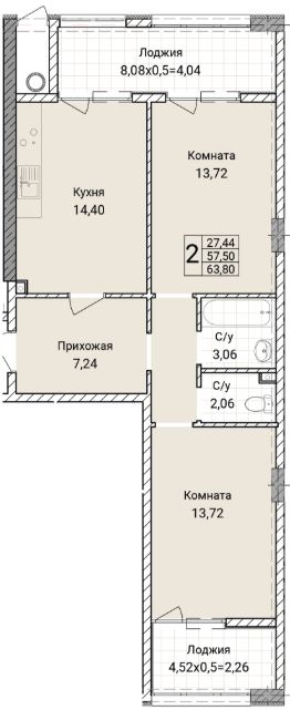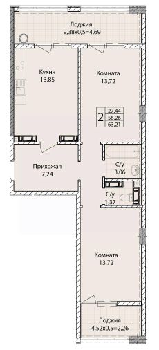 55 м2