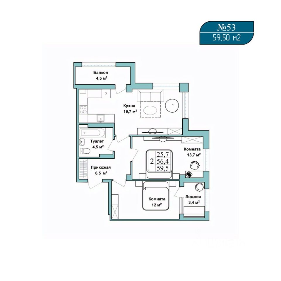 59 м² · Этаж 8 из 9