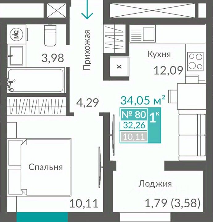 32 м² · Этаж 9 из 12