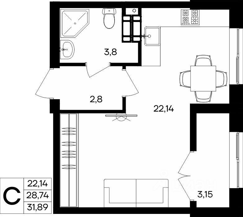 31 м² · Этаж 1 из 9