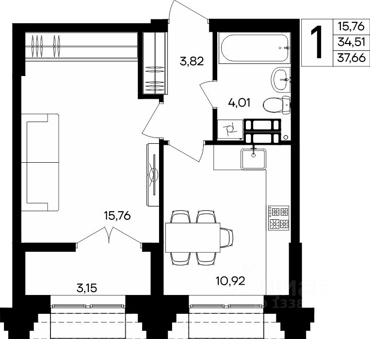 37 м² · Этаж 6 из 9