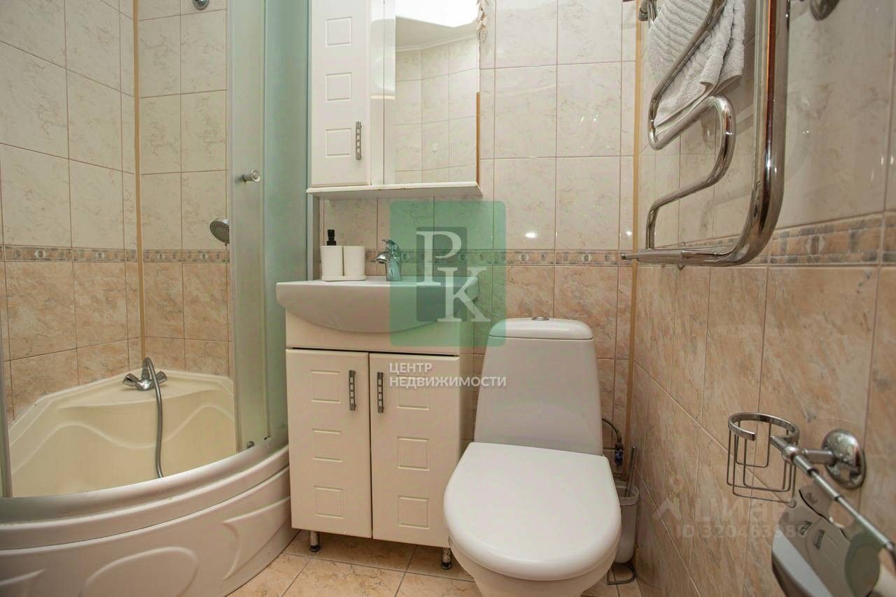 Продаётся однoкомнaтнaя квapтира 46,5 м2, на 3/6 этаже дoма, г. Севacтополь, Гагaринcкий, мер. Лётчики, ул. Aстанa Kecаева, д. 14. О квартире: — Площадь: общая — 46.5 м² (с учётом балкона 8.3 м²), жилая — 20 м², кухня — 10 м². — Коммуникации: центральное отопление и водоснабжение, горячая вода от бойлера. — Планировка: студия с двумя выходами на большой балкон и совмещённым санузлом. Возможность легко создать изолированную комнату без больших вложений. — Ремонт: качественный с премиальными материалами: — Стены: венецианская штукатурка OIKOS ''Ottocento''. — Пол: свежий ламинат. — Санузел: угловая ванна, сантехника Roca, итальянская плитка. Оснащение: — Техника: встроенная кухня с плитой Siemens (газ/электричество). — Мебель: большой шкаф-купе в прихожей, встроенная кухня (остаётся новому владельцу). — Комфорт: два выхода на застеклённый балкон, цифровое ТВ, интернет. — Вид во двор с хвойными деревьями и фонтаном. О доме (1995 г.): — Уникальный проект с улучшенной планировкой и хорошей шумоизоляцией. — Инфраструктура: лифт, мусоропровод, ухоженный подъезд. — Территория: закрытый охраняемый двор с детской площадкой и фонтаном, бесплатной парковкой со шлагбаумом, собственной управляющей компанией. Локация (топ-район):В пешей доступности: — Парк Победы, сквер им. Астана Кесаева по соседству. — ТЦ ''Посейдон'', рынок, супермаркеты. — Школы, детсады, спортзалы, банки — Остановки транспорта с выездом в центр. — До моря: 10-15 минут пешком. Условия покупки: — Оплата: наличные, ипотека, безналичный расчёт. — Прямая продажа, оперативный выход на сделку. — Документы: Готовы к сделке. Добавьте предложение в закладки, чтобы не потерять его! Чтобы назначить просмотр или задать вопрос, позвоните или напишите нам! Номер объекта: 464310
