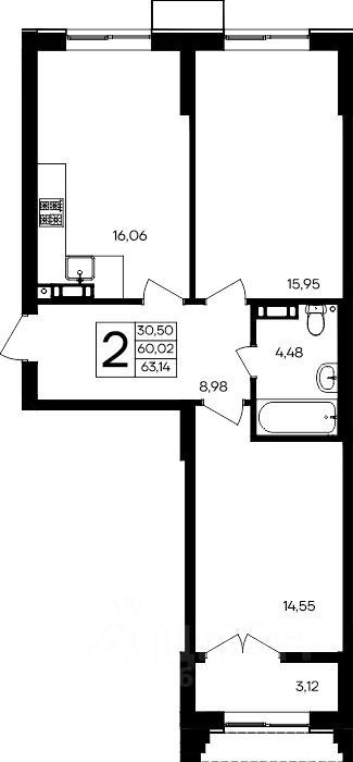 62 м² · Этаж 2 из 8