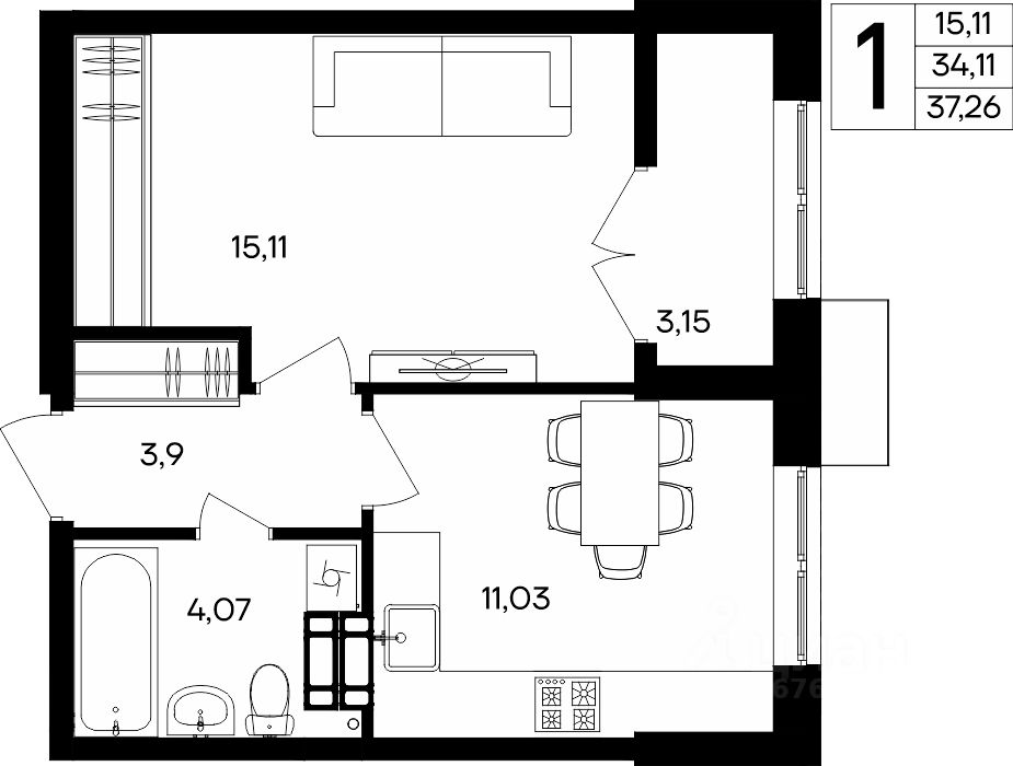 37 м² · Этаж 4 из 9