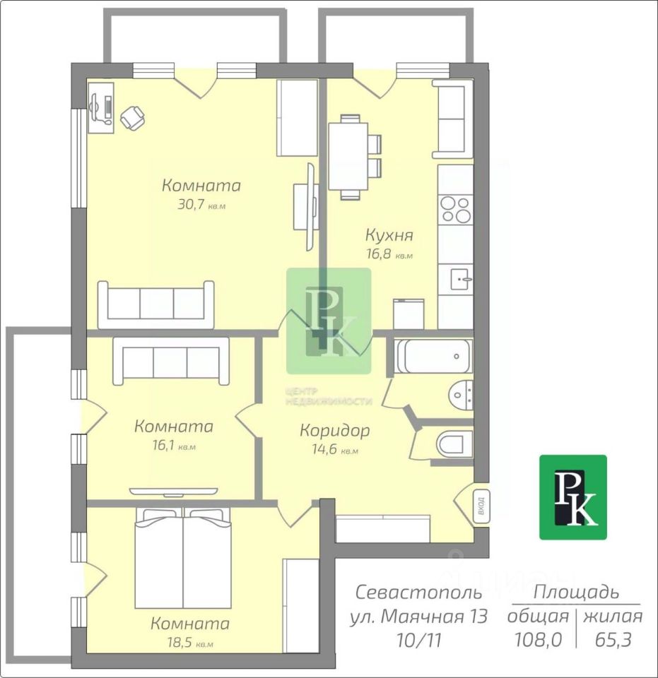 Трехкомнатная квартира 101 м2, с просторной кухней 16.8 м и высокими потолками, на 10/ 11 этаже дома. Расположена в г. Севастополь, Гагаринском районе, улица Маячная, д.13 Квартира теплая и солнечная, с удобной практичной планировкой, подойдет для проживания, а также для сдачи в аренду. Позвоните нам, чтобы узнать все детали! Технические характеристики: -Адрес: г Севастополь, Гагаринский район, улица Маячная, д 13 -Год постройки дома: 2009 -Этаж/этажность: 10/11 -Количество комнат: 3 -Комнаты: изолированные -Общая площадь: 101 м2 -Жилая площадь: 65.3 м2 -Площадь кухни: 16.8 м2 -Высота потолка: 3.5 м -Санузел: раздельный -Водоснабжение: центральное -Горячее водоснабжение: АГВ -Отопление: АГВ Дополнительная информация: Уникальное предложение для тех, кто мечтает о жизни в самом живописном уголке Крыма! Эта просторная квартира общей площадью 101 квадратных метров расположена по адресу: ул. Маячная, дом 13, и открывает захватывающий вид на лучший парк Севастополя Парк Победы. Аллеи парка ведут к морскому побережью, где вас ждет один из лучших мелкогалечных пляжей города, а также летние кафе и аквапарк ''Зурбаган''. В шаговой доступности находятся пятизвездочные отели ''Аквамарин'', что добавляет ещё больше привлекательности этому месту. Описание квартиры: Солнечная квартира расположена на 10 этаже с общей площадью 108 м2, который порадует вас косметическим ремонтом, балконом и тремя комнатами. Высота потолков здесь 4 метра, что добавляет пространству лёгкости и уюта. Удобства: Имеется два парковочных места, что крайне удобно. С вяжитесь с нами сегодня, чтобы записаться на просмотр и узнать больше. Сделайте шаг навстречу своей мечте о жизни на побережье! Позвоните нам, чтобы назначить просмотр! Инфраструктура: В доме - стоматология, развивающая языковая школа, детский садик. Рядом одна из лучших школ Севастополя, магазины. Море в шаговой доступности (пляж Омега), рядом Парк Победы. До остановки транспорта - 5 минут, есть скейт - парк, спортивные площадки. Подходит для наличного расчета, под ипотеку, материнский капитал, жилищные сертификаты. Документы РФ проверены юристами и готовы к сделке. Профессиональное сопровождение до получения права собственности. Добавьте предложение в закладки, чтобы не потерять! Для просмотра и получения дополнительной информации - звоните!