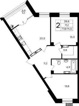 77 м2