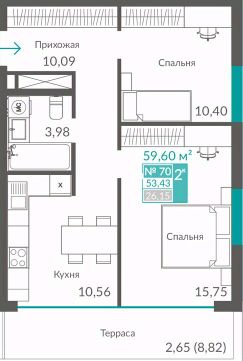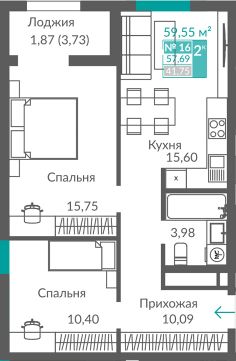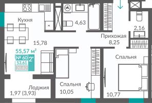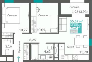 Продаётся 2-комнатная квартира в строящемся доме (Секция 2), срок сдачи: III-кв. 2027, общей площадью 57.69 кв.м., на 2 этаже. Новый жилой квартал ''Видный'' от застройщика ''Монолит'' расположен по адресу Севастополь, Балаклавское шоссе