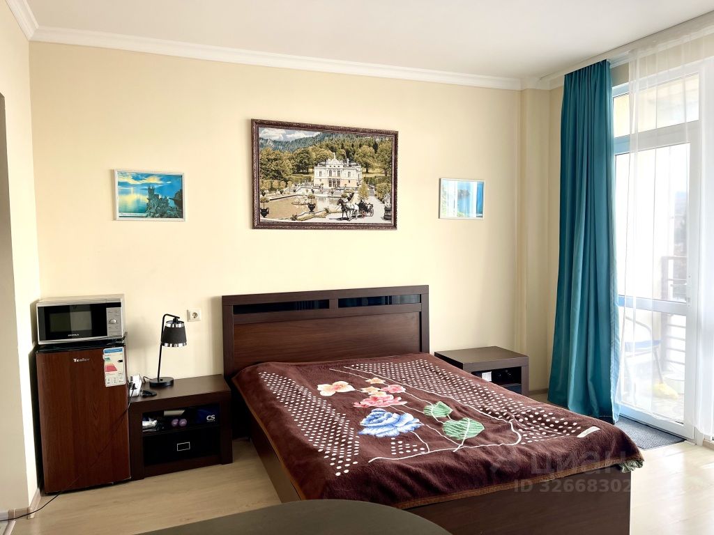 Продаются апартаменты - студия общей площадью 22.5 кв м в комплексе Бухта Мечты, расположенном в красивейшей бухте Ласпи Южного берега Крыма. В помещении свежий ремонт, новая техника, мебель. Апартаменты расположены на 1 этаже, с видом с остеклённого балкона на горы и парк, с первого этажа удобен выход на набережную с прекрасной зоной отдыха. Комплекс знаменит своей отличной инфраструктурой: - собственный благоустроенный пляж с лежаками и зонтами, - 2 открытых бассейна с морской водой и подогревом (детский и взрослый), - 1 открытый бассейн с пресной водой, - 2 теннисных корта и футбольное поле, - 4 оборудованные детские площадки с анимационными программами, - детская игровая комната в здании комплекса, - мини-маркет и овощная лавка, - СПА комплекс, находящийся внутри здания, и включающий в себя финскую, римскую, русскую, турецкую бани, бассейн с морской водой и подогревом. Также в СПА комплексе находится массажный кабинет и большой спортзал с красивым видом на море, - подземный паркинг, - ресторан европейской кухни с возможностью доставки заказа в апартаменты. Отдыхающие давно оценили вкус крымских устриц, выращенных на местной устричной ферме, - по желанию собственника управляющая компания производит уборку помещения, предоставляет услуги прачечной. Отдых в Бухте Мечты это семейный уют в 30 метрах от чистого моря. Цена действительная, зафиксирована собственником. Звоните показ апартаментов в любое удобное время!