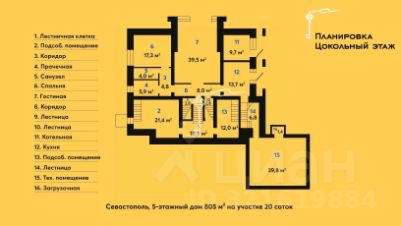Продажа эксклюзивной резиденции 805 м² на земельном участке в 20 соток с бассейном в Севастополе. Роскошный особняк в классическом стиле привлечет внимание тех, кто ценит престиж, особый комфорт и функциональность жилья. Дом эстетичен и изящен, благодаря гармоничному сочетанию выразительного экстерьера и максимально практичной организации внутреннего пространства.Планировка: две просторные гостиные с панорамными окнами, одна с камином, другая с видом на природу и второй свет, 17 комнат, из них 5 спален с собственными санузлами, кухня, столовая, библиотека, бильярдная, спортзал, винный погреб, помещение для массажного кабинета, помещение для оружейной комнаты, гардеробная, кабинет, несколько помещений для хранения, прачечная, котельная, спальня для прислуги с санузлом, бельевая, чемоданная, мастерская, кинозал, гараж на 2 машины с автоматическими рольставнями.Помимо гаража есть паркинг во дворе на 4 машины и 2 места за воротами, итого 8 машиномест. Основные преимущества: -Авторский проект от известного Севастопольского архитектора Валерия Мухина,-Повышенная сейсмостойкость выдерживает до 9 баллов (дом простоит 100 и более лет),-Реальная толщина стен 0,85 м + отделка, что сохраняет тепло зимой и прохладу летом,-Комфортный микроклимат, не требуется кондиционирование,-Уникальная конструкция 5 этажей с 9 уровнями,-Чистовая отделка, завершенная летом 2019 года,-Разделенные жилые зоны для владельцев и обслуживающего персонала,-Использование натуральных материалов в отделке: мрамор, дуб, ясень, сосна.Архитектура: сдвиг передней части здания на полэтажа относительно задней создает удобную и функциональную планировку.Высота потолков достигает 6 метров. Особенности: -Большие и светлые гостиные с уютными зонами для отдыха.-Вдоль каждого этажа проходят большие террасы с шикарными видами.-Все комнаты в доме имеют собственные названия.-Просторные лестничные марши, 2 чердачных помещения, функциональная служебная лестница,-Во дворе есть небольшой домик для садовника или охраны и вольер для крупных животных.Зеленый оазис в центре города с березовой аллеей, розарием и плодовыми деревьями: вишня, персик, инжир, зизифус, хурма, слива, 20 лоз винограда 5-ти сортов. Микроклимат во дворе особый: фонтан, бассейн, сосны создают тень и температура воздуха летом ниже, чем за воротами. Во дворе построено более 200 метров подпорных стен высотой от 1 до 3 метров для укладки грунта, который был привезен в 2007 году — более 200 камазов. Расположение: Дом находится в Севастополе , вдали от шумных магистралей, в спокойном и социально-благополучном районе с современной частной застройкой. В пешей доступности вся инфраструктура: супермаркеты, школы, поликлиники, рестораны и кафе и рынок. Отличная транспортная доступность. -До моря 7 минут на машине. -До Ялты или аэропорта - 1,5 часа на авто. Цена по запросу! Звоните!