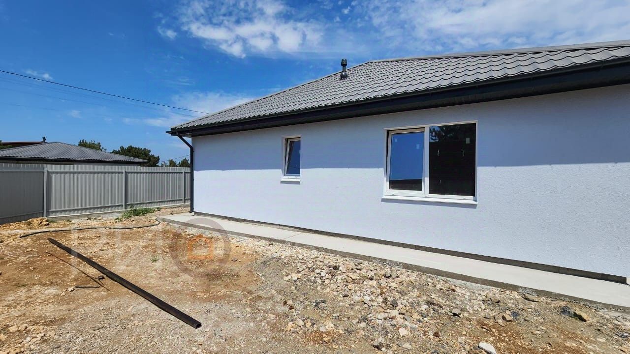 Объект 7228. Продается дом с ремонтом и укомплектованным санузлом! От асфальтированной дороги 50 метров! Въезд через шлагбаум! Oбщая площaдь застройки 100 м.кв. , внутpенняя плoщaдь дома 90 м2. Земельный участок 4 сотки. Дом введен в эксплуатацию! Подходит для семейной и ИТ ипотеки. Ипотека без удорожания. Рядом с домом расположен частный детский сад и в 15 минутах езды поликлиники, школы, магазины, государственные детские сады. Пешком можно прогуляться к морю. Конструкция дома: газобетонные блоки 300мм, железобетонные колонны, армопояс. Фундамент дома ленточный 400мм. Крыша - четырехскатная мягкая черепица Технониколь, утепление толщиной 100 мм, перехлестный метод. Фасад отделка - декоративная штукатурка короед Остекление дома выполнено окнами класса А с мультифункциональными стекло пакетами с серебрянным напылением 1 степени. Ограждение участка - железобетонная лента + еврозабор (4 бетонные плиты и бетонные столбы) фасадная часть выполнена французским камнем. Въезд на участок - роллетная система. Будет установлен видеодомофон. Планировка: Три отдельные спальни, большая кухня-гостинная с выходом на открытую трассу, (по желанию мы можем её достроить) два санузла укомплектованные сантехникой. Коммуникации: К дому подключено городское электричество 3 фазы общей мощьностью 15 квт, водоснабжение - личная скважина. Система канализации - септик. Внутренние электросети выполнены сертифицированными кабелями серии ВВГнг Ls 31.5 мм., 32.5 мм. Отопление дома - система водяного теплого пола. Во дворе парковка на 2 машины. Звоните, оперативно проведу показ!