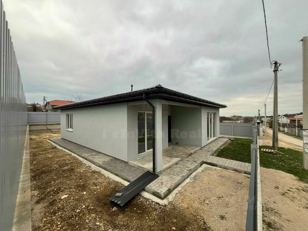 Объект 779. Ищите купить дом недорого в семейную или айти ипотеку в Севастополе? Отличное предложение для семьи с детьми! • вторая линия от дороги - нет пыли и грязи • локация застроена однотипными домами • понятная планировка с тремя спальнями • без комиссии для покупателя - прямое предложение Характеристика участка: огражден по периметру забором, установлена калитка и откатные ворота, ровный, правильной формы, выполнено зонирование парковки и септика, правильная посадка дома. Характеристика дома: монолитно каркасный дом с заполнением газобетоном и утеплением пенополистиролом, выполнена внешняя и внутренняя отделка, одноэтажный дом с тремя раздельными спальнями и большой кухней, высота потолка в черновую 3.2 метра (после стяжки и потолков будет 3 метра), четырехскатная крыша, кровля - мягкая черепица (есть чердачное помещение). До асфальтированной дороги 300 метров, до ближайшей остановки общественного транспорта 800 метров, до смотровой на Георгиевском монастыре еще 650 метров. Документы готовы к прямой продаже, под любой формат расчета. Без наценок и комиссий для покупателя. Полное сопровождение сделки.