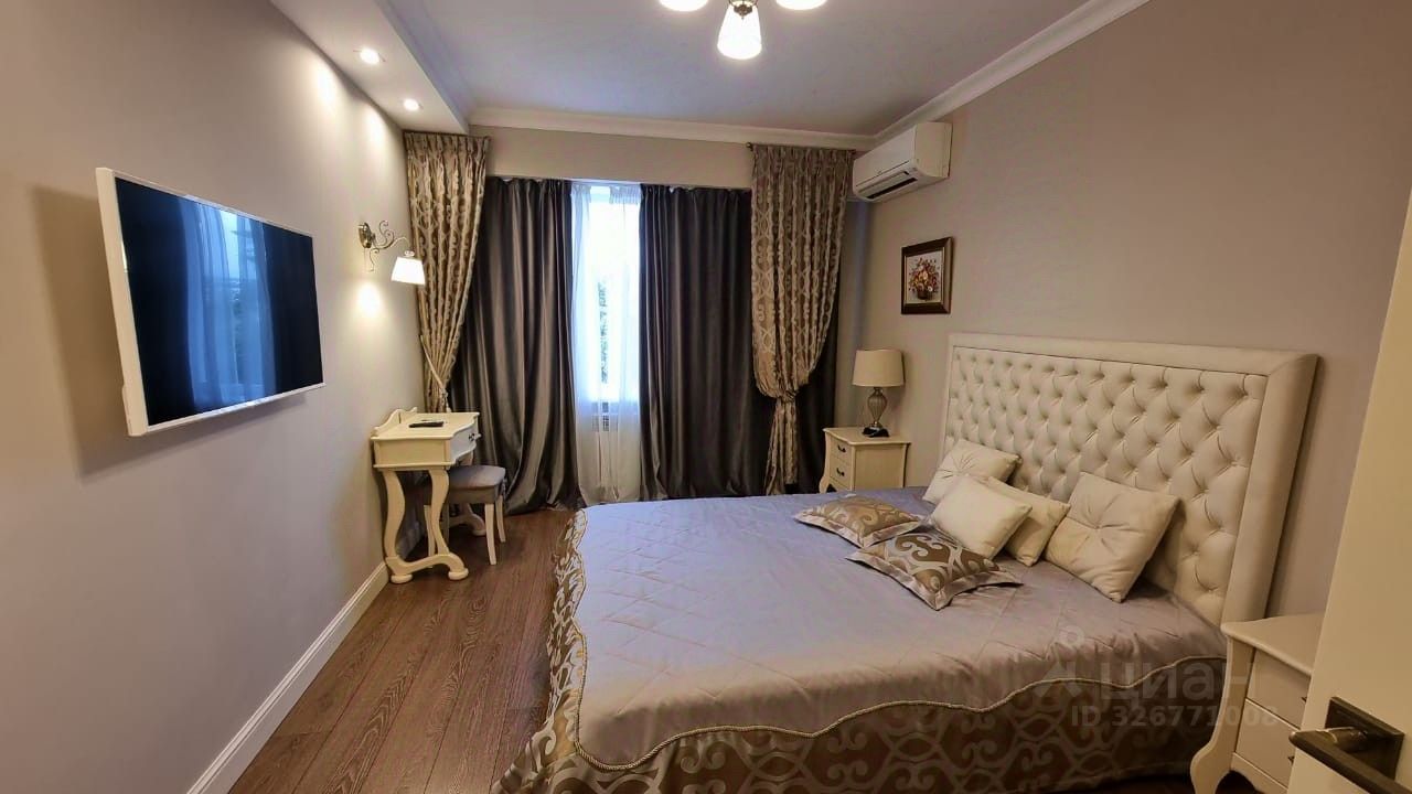 ID: 134691. Сдаётся на длительный срок, 3-комнатная квартира 110 кв.м 4/6 эт. в Гагаринском р-н, мкр. Лётчики, по ул. Астана Кесаева, д. 14А. Тихий уютный зелёный двор с фонтаном, видеонаблюдение, охраняемая парковка во дворе. В радиусе 1-го километра несколько школ, детских садов, супермаркетов, множество разнообразных продуктовых и хозяйственных магазинов, аптеки 24/7, кафе, спортклубы, офисные центры, торговые центры. Множество мест для променада, пешком можно прогулять до Парка Победы 1.5 км, пляжа парка Победы 2,7 км, бухты Омега 1.5 км. Описание квартиры: Квартира в классическим стиле, высокий потолок, элементы декора, декоративные потолки, хорошая шумоизоляция. Квартира представляет собой гостиную, две спальни, два санузла (ванная/душевая кабина), просторная кухня, большой застекленный балкон с окнами в тихий зелёный двор. Квартира полностью меблирована: двуспальные кровати в спальнях, диван в гостиной, комоды, тумбы, кресла, стулья, шкафы-купе, журнальный стол, кухонный стол/стулья, кухонный гарнитур. Максимально укомплектована бытовой техникой, в том числе: холодильник, стиральная машина, кондиционеры, 4 телевизора, микроволновая печь, духовой шкаф, газовая и электрическая плита, вытяжка кухонная, WI-FI роутер, домофон с видеонаблюдением. Дополнительно: Цифровое телевидение, постельное бельё, посуда, одеяла, подушки, утюг, гладильная доска, интернет. Условия аренды: - При заселении оплачивается первый месяц аренды и залог в размере одного месяца. Залог можно разделить на два месяца. Коммунальные платежи в стоимость не включены. Возможна оплата по безналичному расчёту для ЮЛ. Возможен договор для госслужащих и военнослужащих. Возможна аренда с домашними животными. Возможна аренда с маленькими детьми. Заинтересовала квартира? Звоните! При звонке сообщите номер объекта - 134691. Номер объекта: 1100196