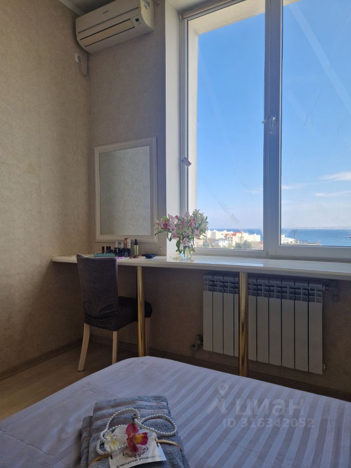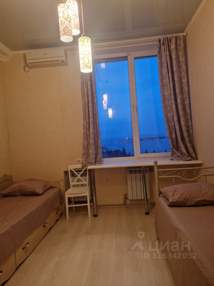 Невероятный вид на бухту, море, город и даже горы видны. Самый престижный район у Парка Победы 1 минута. Все магазины, модные кафейни и рестораны, рынок с фермерскими продуктами, все в шаговой доступности. Пляж 8 минут пешком. Отель Аквамарин виден из окна можно пользоваться их инфроструктурой за отдельную плату. Возле дома есть бесплатная парковка. Полностью развитая инфраструктура района, до центра 10минут на машине. Квартира светлая и уютная для семьи до 4 человек. Высота потолков 3 метра. Видовой балкон. Предусмотрено всё для комфортной жизни и отдыха. Сдаётся только в среднесрок. Цена зависит от срока прибывания. Плюс счетчики 2 просторные комнаты. Одна с двумя отдельными кроватями 90 на 200, другая с одной 160 на 200 Потрясающий рассвет каждое утро вам обеспечен. Неспешный завтрак с ароматный кофе можно выпить на балконе. Прогулочный шагом 8 мин и вы на пляже или 2 минуты и вы в самом красивом в Севастополе парке Победы. Квартира рассчитана 2_ 4 человек. В квартире широкие подоконники это пространство для работы. Большой кухонный стол, удобно разместиться всей семьёй. ВАЖНО Мы заботится о вашем комфорте. Поэтому в квартире нельзя курить, запрещены вечеринки, проживание с животными, шумные компании.