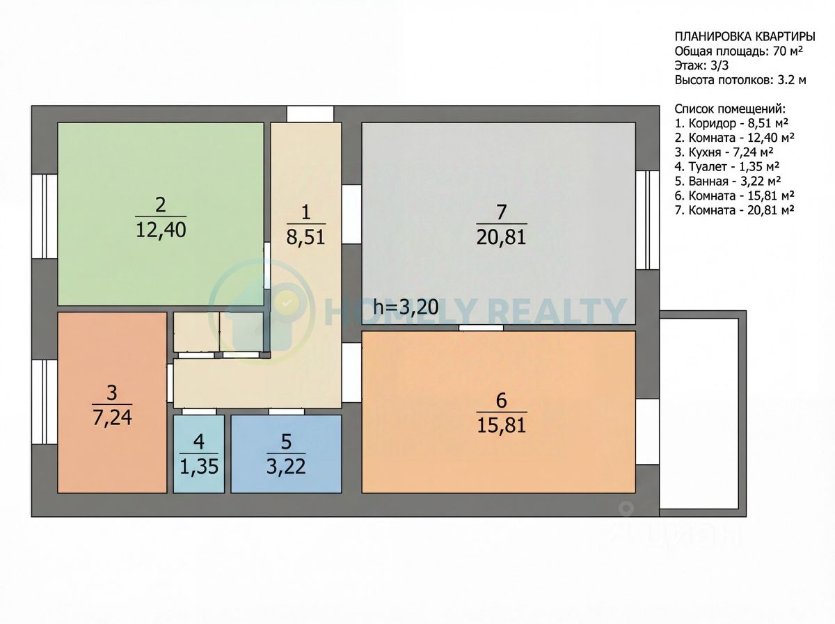 70 м² · Этаж 3 из 3