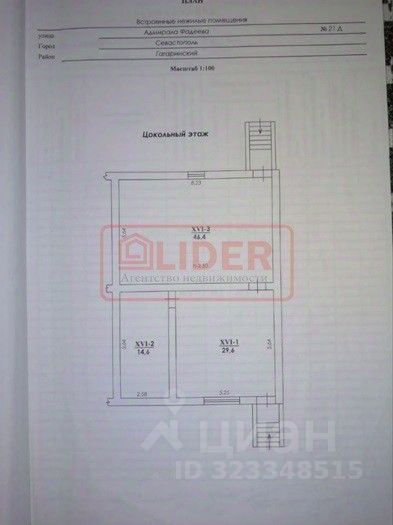 Объект 5624. Помещение 100 м2 свободного назначения в тихом центре. Сдается помещение на первой линии по ул. Пионерская, д. 3. Помещениерасположено в цокольном этаже жилого дома. Помещение состоит из трех залов, двух санузлов и подсобных помещений. Два отдельный входа. Помещение оснащено системой отопления и кондиционирования, вентиляцией, пожарной и охранной сигнализацией, несколько мокрых точек. Парковка. Параметры объекта: - Адрес: г. Севастополь, Гагаринский р-н, ул. Пионерская, д.3. - Этаж/этажность: 1/5 - Площадь: 100 м2 - Высота потолка: 3 - Планировка: зальная - Санузел: отдельный - Отопление: есть - Готовность объекта: с ремонтом - Вход: два отдельных - Парковка: вдоль дороги Технические характеристики: - Мощность 15 кВт - Интернет: есть Возможные виды деятельности: отличный вариант под сферу услугили офиса. Инфраструктура: помещение расположено в крупном жилом массиве. Без комиссии для Арендатора! Позвоните нам, чтобы назначить просмотр!