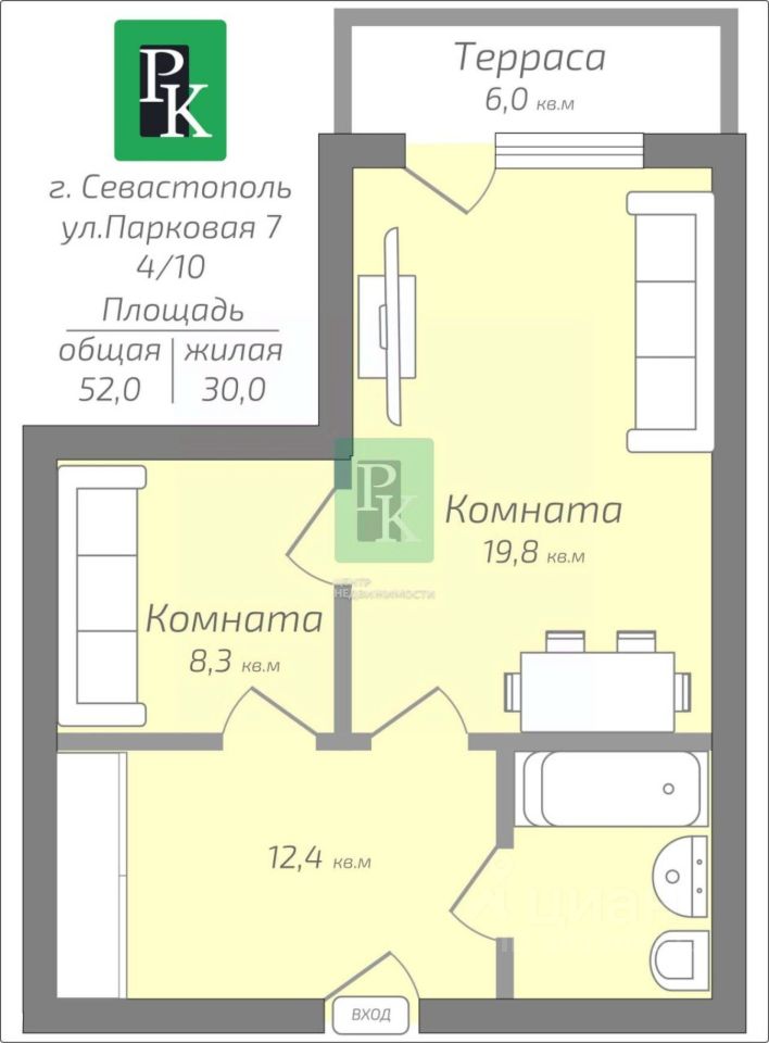 -Адрес: г. Севастополь, Гагаринском район, улица Парковая, д 7 -Этаж/этажность: 4/10 -Количество комнат: 2 -Общая площадь: 52 м2 -Жилая площадь: 30 м2 -Площадь кухни: 6 м2 -Высота потолка: 3 м -Санузел: совмещенный Дополнительная информация: Продаются элитные апартаменты в лучшем апартамент-комплексе Севастополя Aqua Deluxe