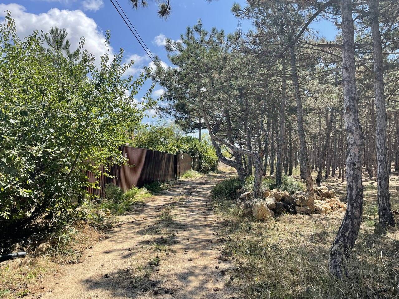 Участок расположен у леса из Крымской сосны, электричество и кооперативная вода доступны к подключению.