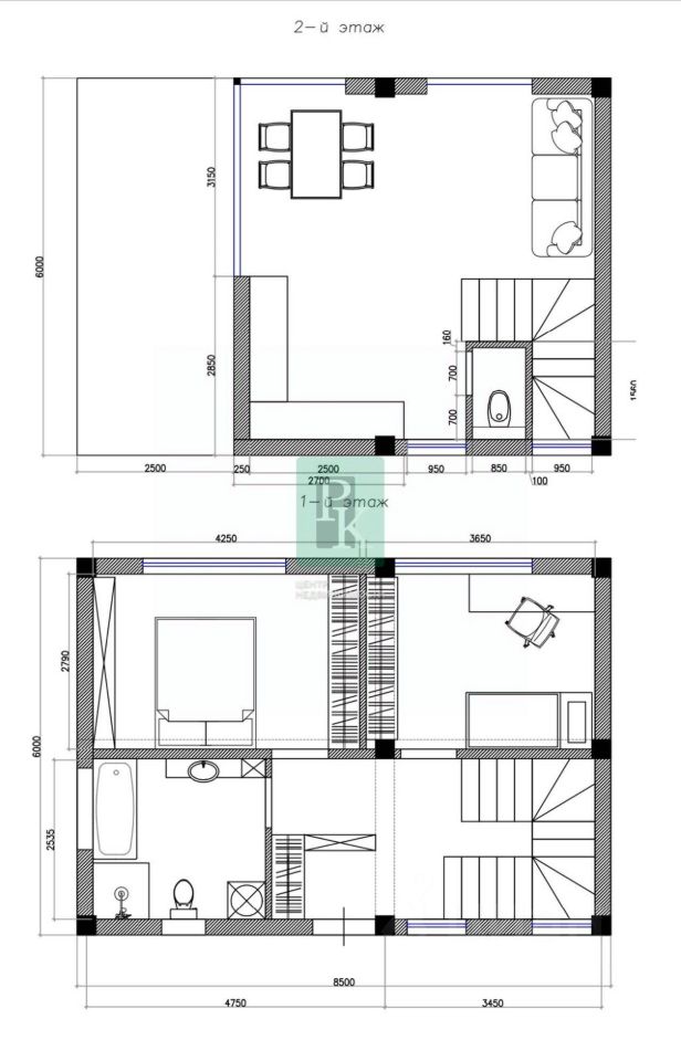 -Всего 2 этажа, 3 комнаты -1 этаж: входная группа с техническим помещением под лестничным пространством и отдельным окошком во двор, спальня 13.9м2, детская комната 11.3м2, совмещенный санузел, с высококачественной сантехникой, ванной, душевой кабинкой 6,7м2 -2 этаж: кухня-гостиная 29м2 с панорамными окнами и раздвижной системой выхода на видовую террасу 15,7м2 Планировка участка: