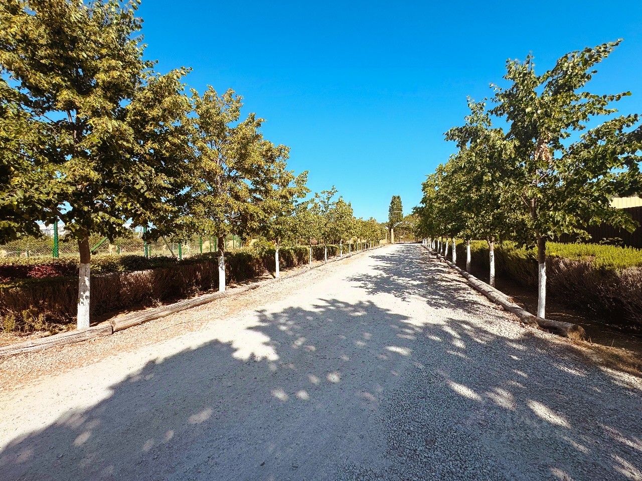 Обособленный огороженный участок 500 кв.м. По периметру высажены деревья.