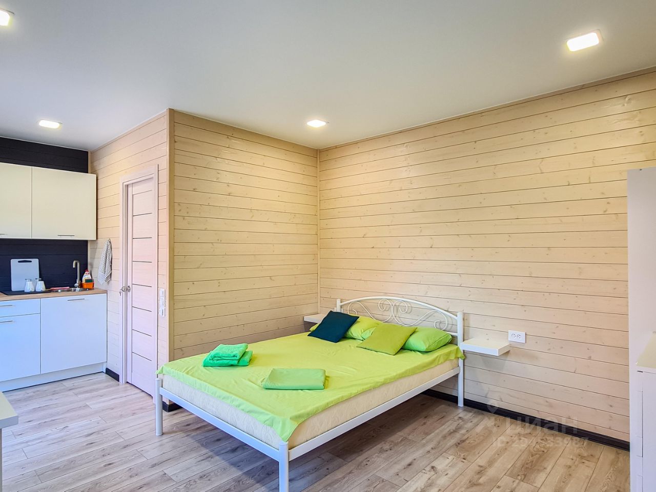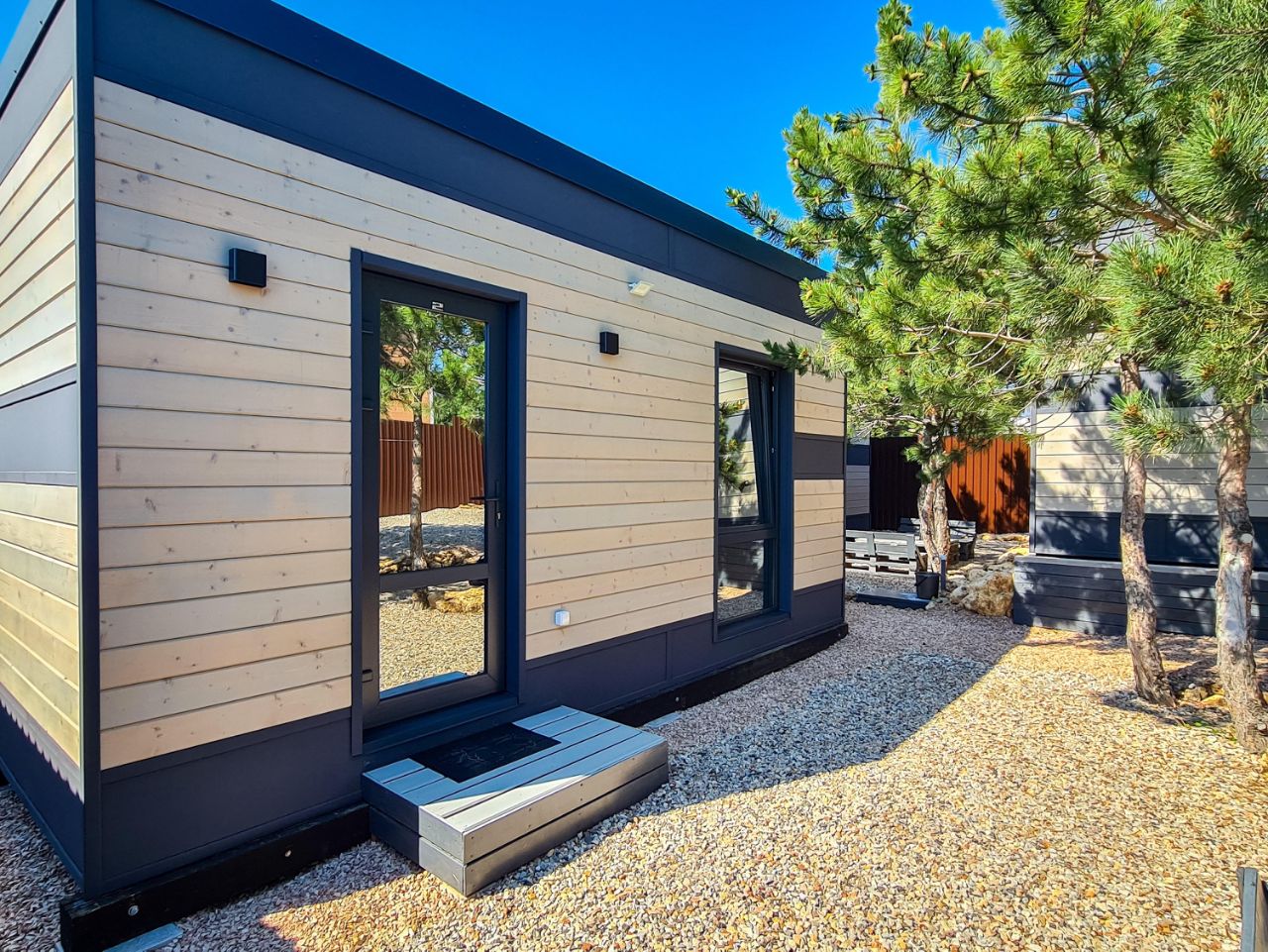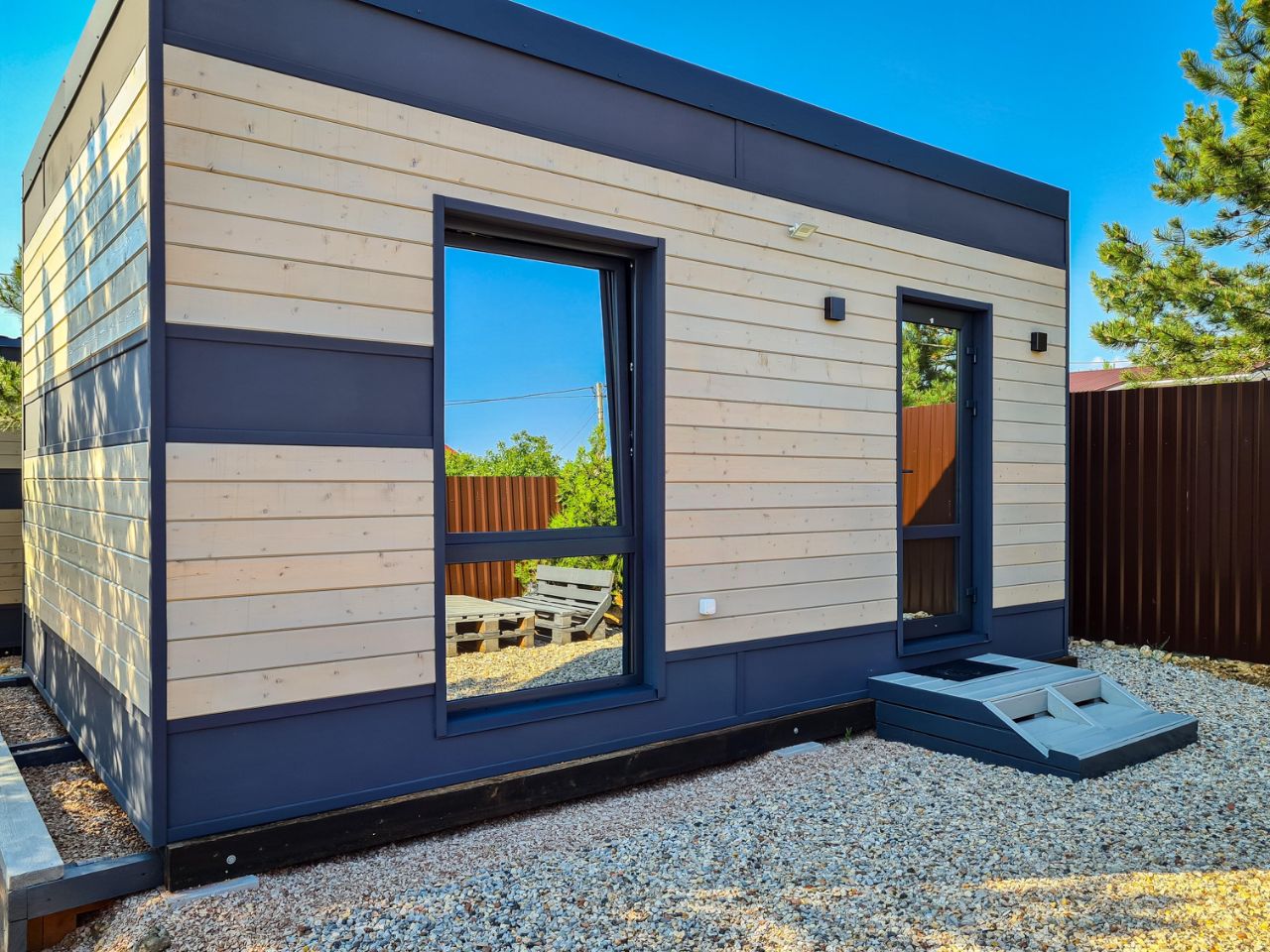 Домик выполнен в виде студии размером 30 кв/м, рассчитан на 2-х взрослых, на этой площади вмещается: