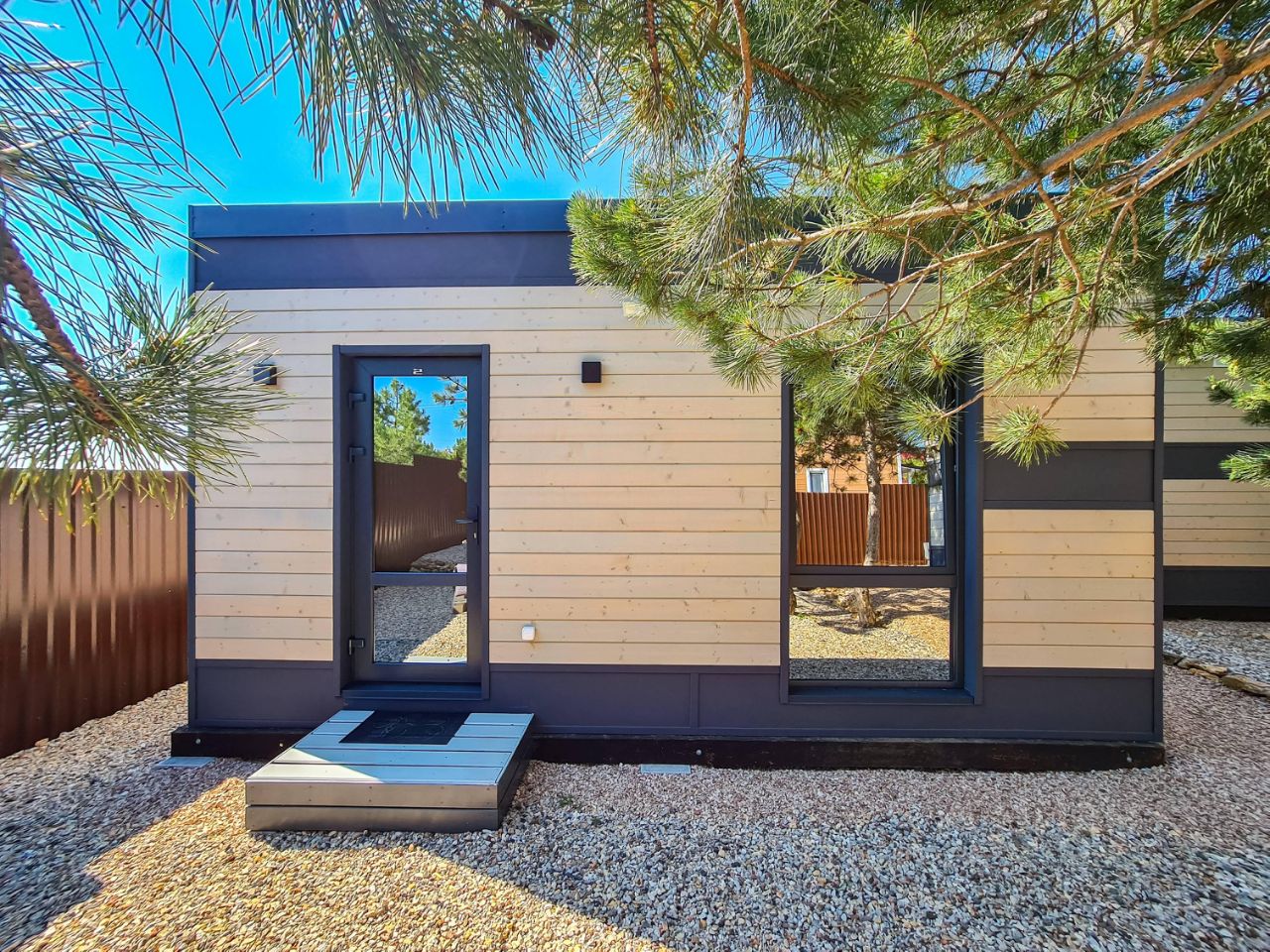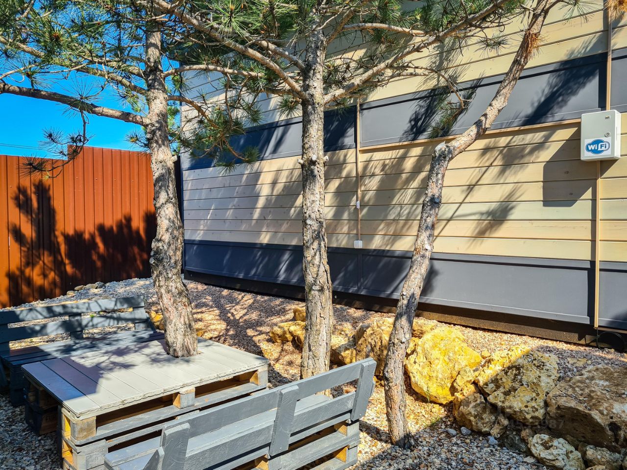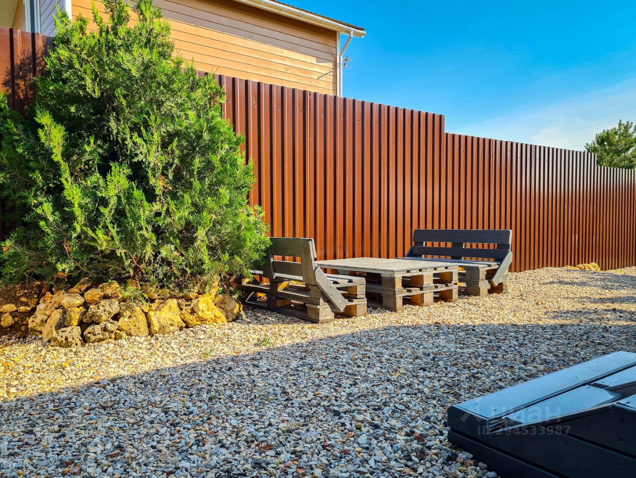 Дом имеет свой благоустроенный дворик с зоной для отдыха и барбекю