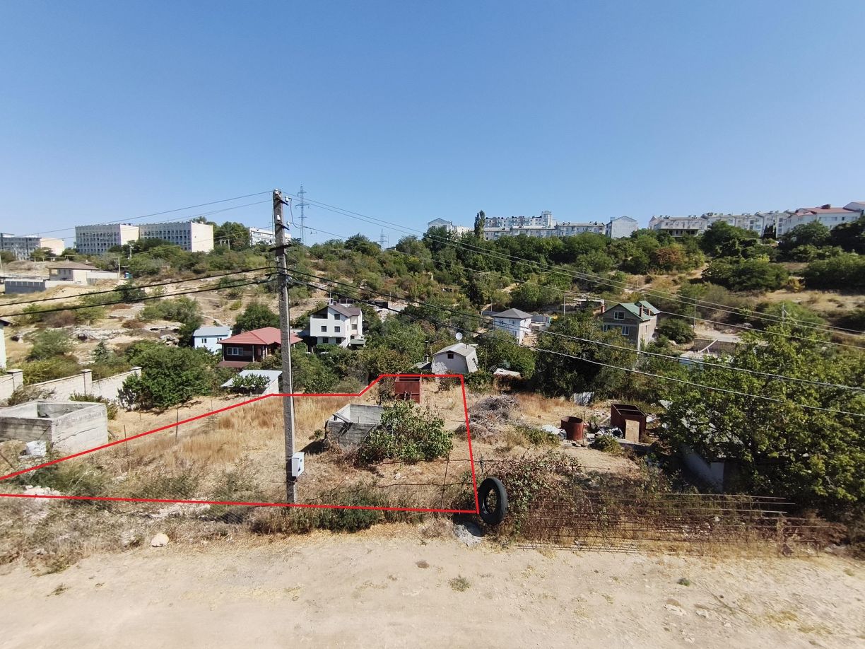 В продаже участок с небольшим уклоном. Фасадная часть около 14 метров.