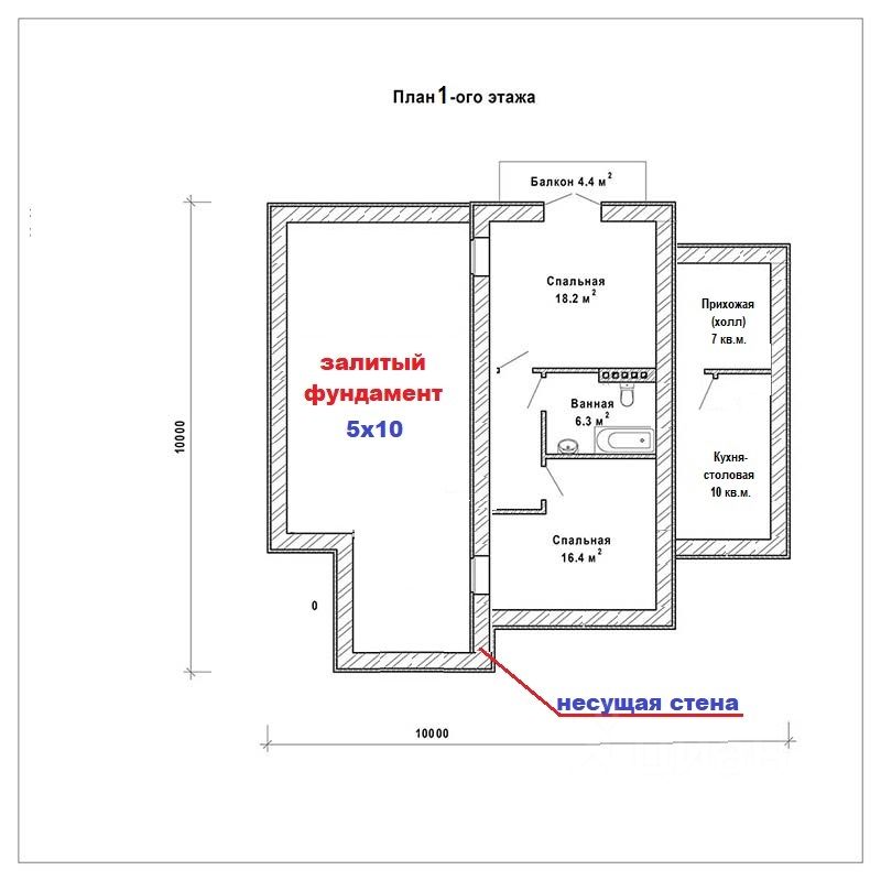 Для примера: (схема дома на последнем фото) Заливаете общий фундамент первого этажа 100 кв.м, делите его пополам на две части несущей стеной по 50 кв.м. Первые 50 кв.м. полностью выгоняете под крышу (если 2 этажа то 100 кв.м), далее регистрируете эту половину дома.