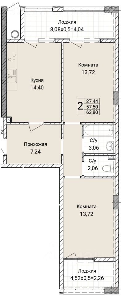 Общая площадь63,8 м2