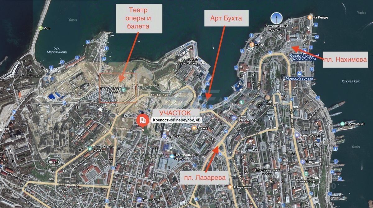 Участок в самом центре города ул. Крепостного 4-В (в районе Арт бухты).
