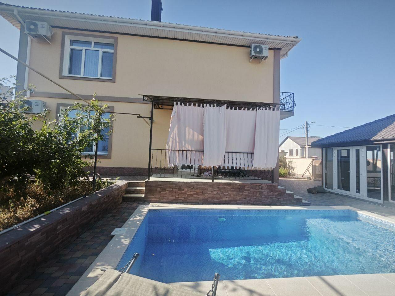 - Просторная беседка с зоной барбекю. - Бассейн. - Подсобные помещения. - Гараж с автоматическими воротами + дополнительное место во дворе для парковки нескольких машин..