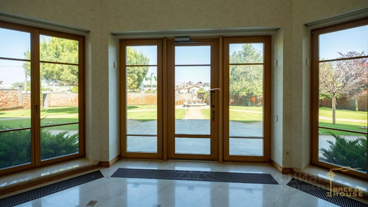 Толщина капитальных стен — 800 мм, что обеспечивает высокий уровень шумоизоляции и энергоэффективности. Установлены немецкие трехкамерные окна (3 стекла по 6 мм) — дуб внутри, алюминий снаружи. На всех окнах — автоматические роллеты, а также система умных штор, в зависимости от помещений.