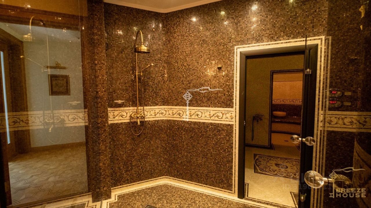 На территории — собственный SPA-комплекс, интегрированный в зону отдыха. Двор с ландшафтным дизайном: редкие хвойные и лиственные деревья, мраморные скульптуры, фонтан, мощеные дорожки.