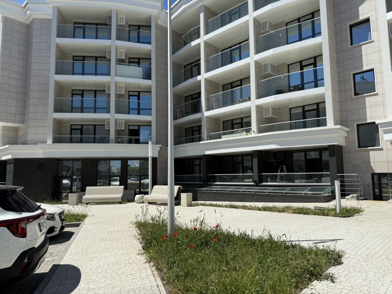 Преимущества комплекса: Собственная прогулочная набережная, поющие фонтаны, в шаговой доступности пляж яхт-клуб и пляж Парк-Победы Первая линия от моря Открытый бассейн с подогревом, спа зона Фитнес-центр - профессиональные тренажеры на разные группы мышц, кардио-зона, отдельные помещения для групповых тренировок Медицинский спа центр Спортивные и детские площадки Подземный паркинг и надземные парковочные места Салон красоты, ресторан, кофейня, со стороны моря на террасе первого этажа - видовое кафе Высокие потолки - 3,5 м Благоустроенная, охраняемая территория, консьерж сервис 24/7