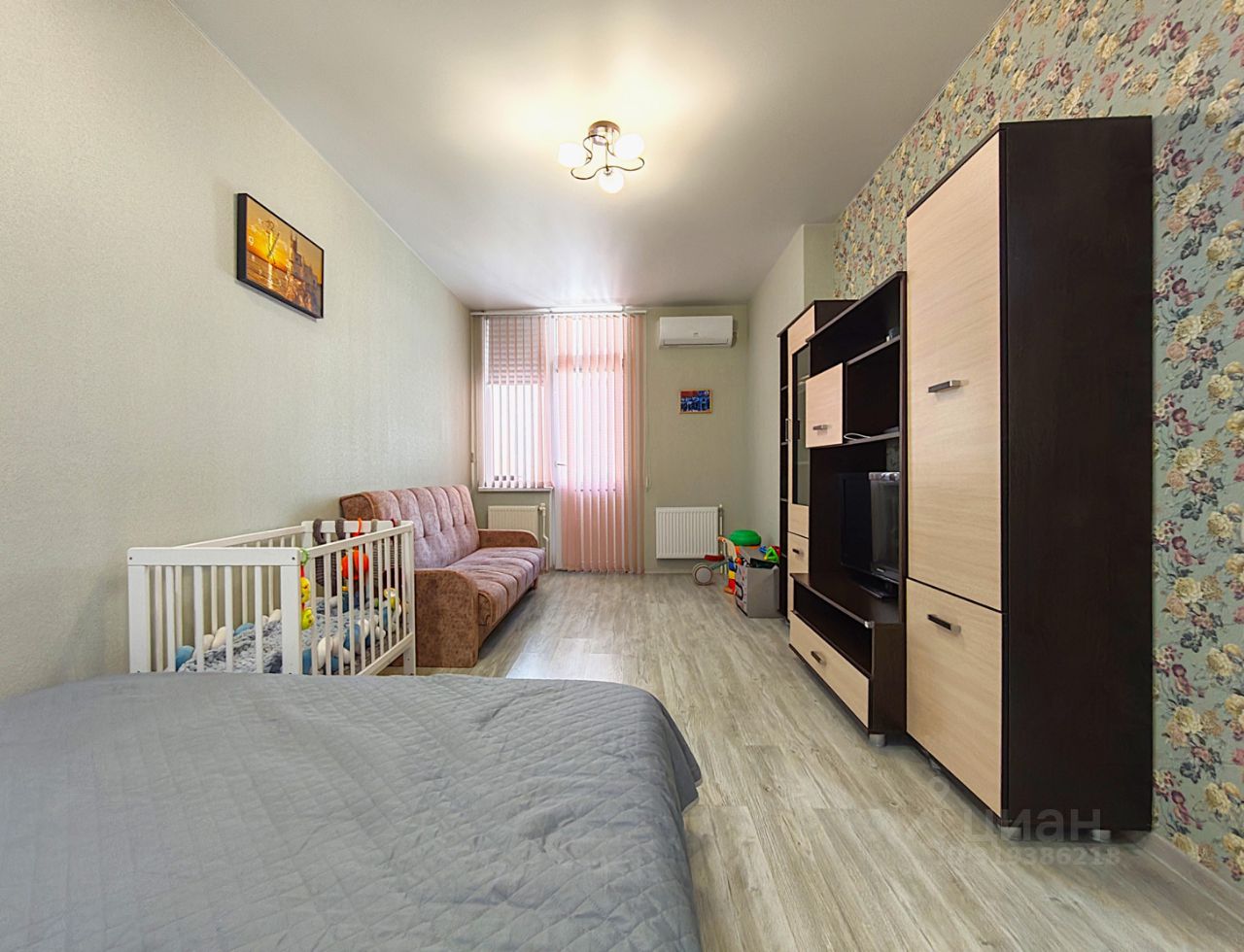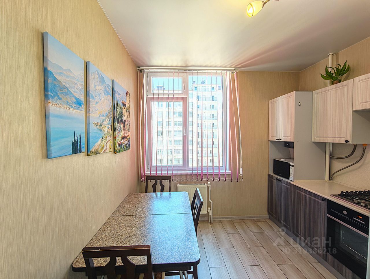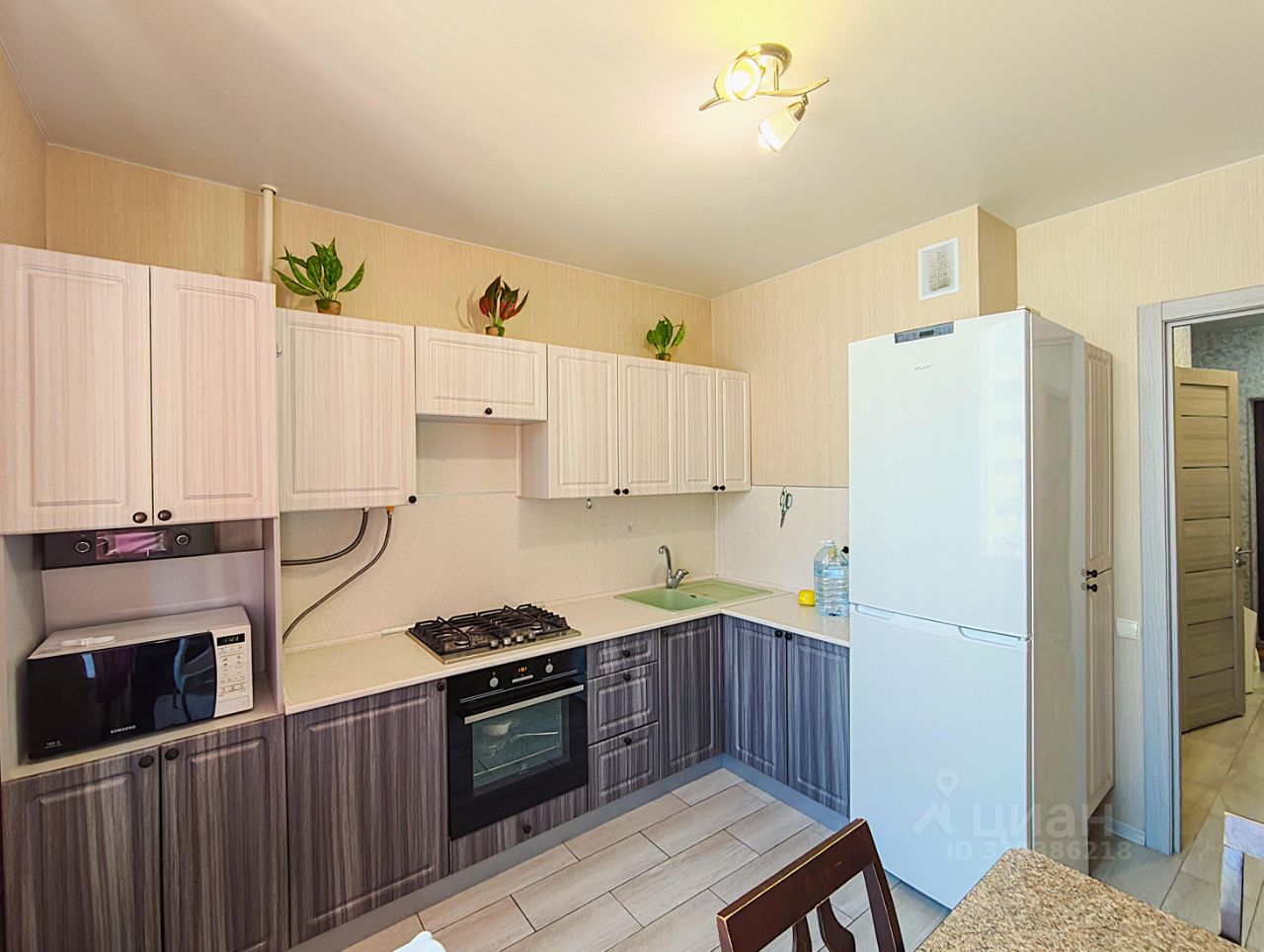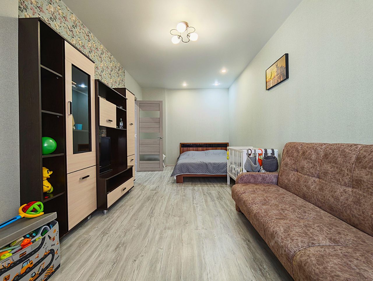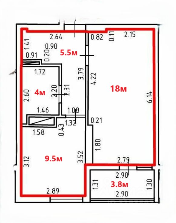 Общая площадь — 38 м, кухня - 9.5 м, лоджия - 4 м.