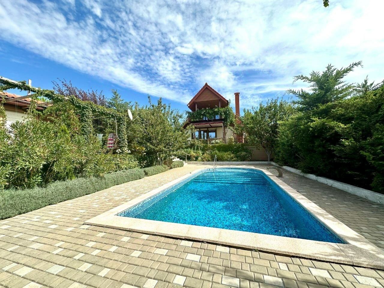 Объект 21885. Продается великолепный 2-х этажный дом с ремонтом, полностью меблированный и оснащенный бытовой техникой, расположенный в живописной месте на Фиоленте в СТ ''Берег''. Этот дом идеально подходит для комфортного проживания и отдыха. Основные характеристики: - Площадь дома: 189 кв. м. - Количество комнат: 6 комнат, включая шикарную гостиную, где можно проводить время с семьёй и друзьями. - Отдельный вход: На второй этаж имеется отдельный вход с террасой и видом на море, что обеспечивает приватность и удобство. Преимущества: - Во дворе: Просторный двор с бассейном, где можно наслаждаться летними днями и проводить время на свежем воздухе.
