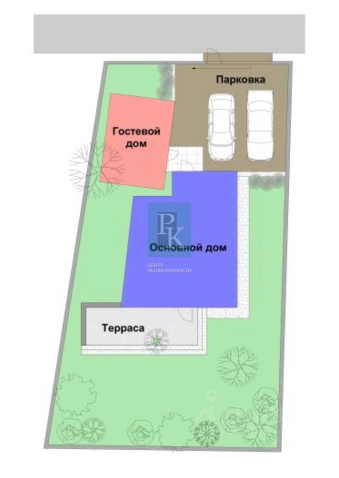 -Всего 2 этажа, 4 комнаты -1 этаж - прихожая, гардероб, санузел, кухня-гостинная с выходом на террасу -2 этаж - 3 комнаты, санузел + Гостевой дом Планировка участка: