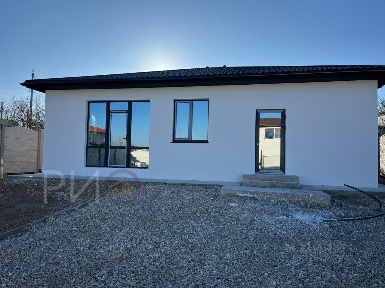На данный момент полным ходом идет строительство, установка оконных блоков. В стоимость входит дом в черновой отделке и выполнены работы по утеплению и покраске фасада. Выведена канализация и сделан септик. Будет как на фото.