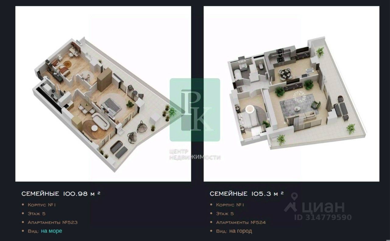 -Адрес: г. Севастополь, Гагаринский район, улица Парковая, 5 -Площадь: 101 м² -Высота потолка: 3,1 м -Планировка: зальная -Этаж/этажность: 5/9 -Готовность объекта / Варианты отделки: черновая отделка, вайт-бокс с электрикой, отделка под ключ -Отдельный вход: нет Технические характеристики: