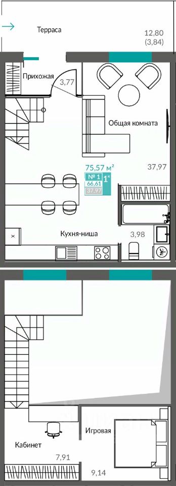Общая площадь66,61 м2