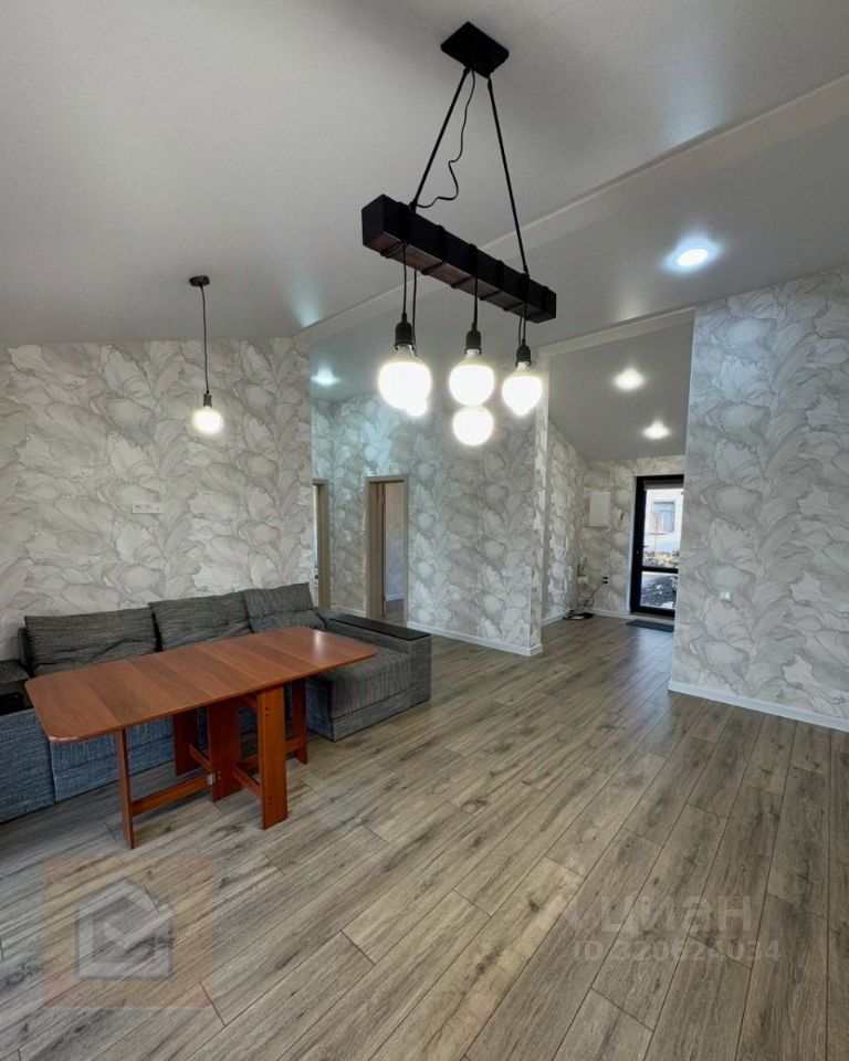 В доме две спальни с гардеробными и светлая просторная гостинная - кухня с выходом на террасу и зону барбекю.