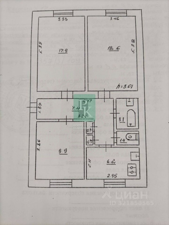-Адрес: г. Севастополь, Ленинский район, ул. Одесская, д .17. -Год постройки дома: 1958 -Этаж /этажность: 1/3 -Количество комнат: 3 -Комнаты: изолированные -Общая площадь: 65,1 м2 -Жилая площадь: 46,4 м2 -Комната: 17,9, 18,6 и 9 м2 -Площадь кухни: 6,2 м2 -Высота потолка: 3 м -Санузел:раздельный -Водоснабжение: центральное -Горячее водоснабжение: газовая колонка -Отопление: центральное А еще: Мечтаете о семейном гнезде в самом центре Севастополя?