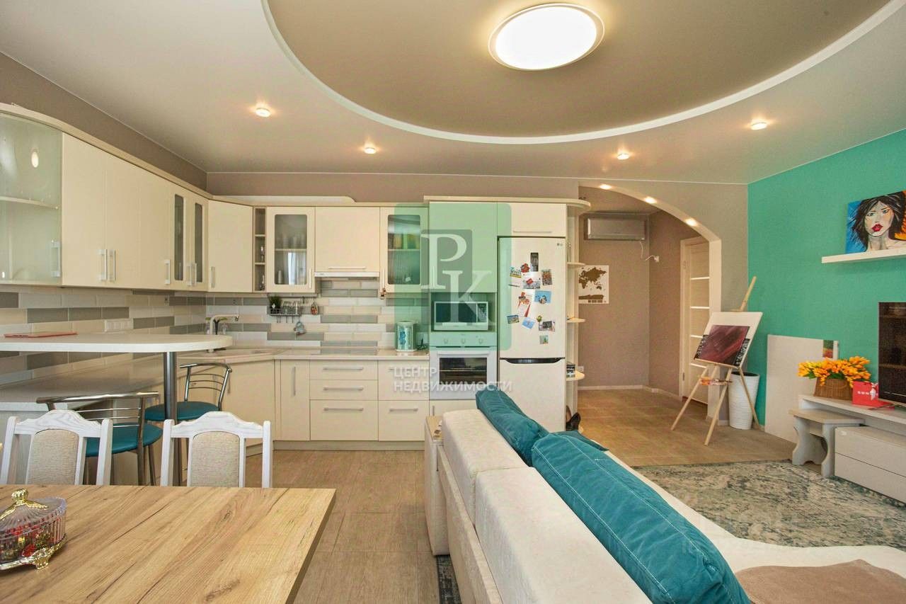 -2-й этаж: Просторная 2-комнатная квартира (90 м²) Вход: отдельный с лестничной площадки. Планировка: Прихожая, большая совмещенная кухня-гостиная с выходом на видовой балкон, две изолированные спальни, большой санузел. Особенности: Панорамный вид на море и Херсонес Идеально для постоянного проживания.