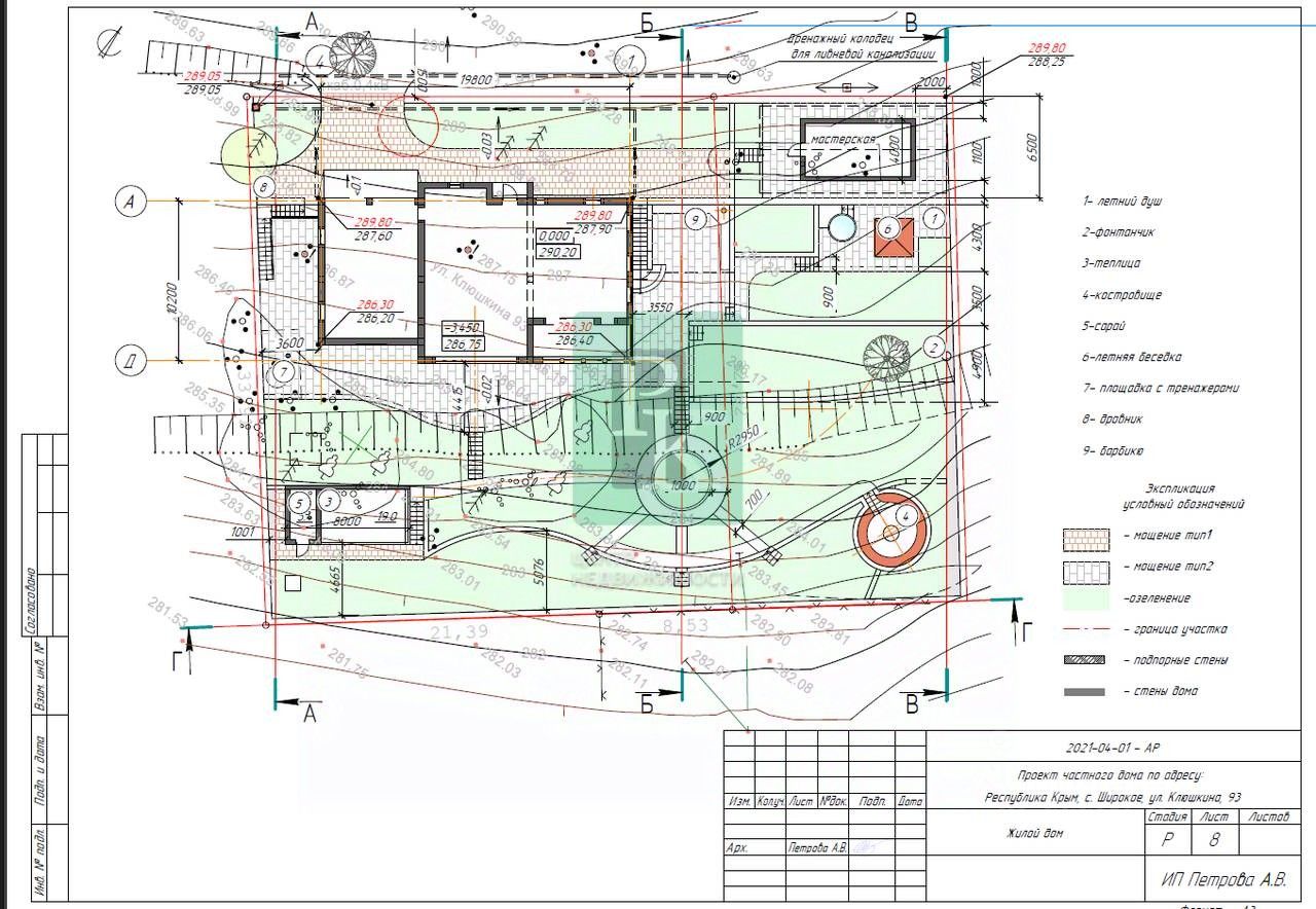 -Всего 25 соток, участок состоит из трех участков 10+5+10 -Статус участка: ИЖС -Удобный подъезд и место для парковки автомобилей -Установлены качественные окна, гаражные ворота. -Гараж на 2 машины -4 террасы Есть план по благоустройству территории, включающий в себя мангальный комплекс, бассейн, парковку, сад, мастерскую и т.д. Полный проект системы водоснабжения, отопления, планировка по комнатам.