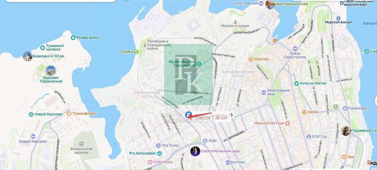 Продам земельный участок 1.28 сот. ИЖС с ветхим домом, под реконструкцию в Центральной части города Севастополя. Район улиц Катерная, Пожарова, пл. Восставших Дом зарегистрирован, подъезд есть. Ширина фасадной части 6 м, длина 19м и 18 м по забору соседей. Участок террасированный, есть возможность оборудовать парковочное место. Коммуникации: - Электричество 15 квт - Вода городская - Газ по границе участка.