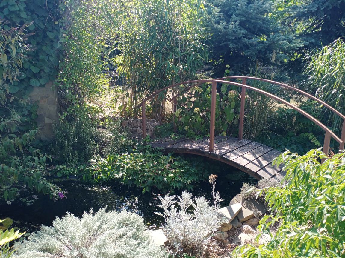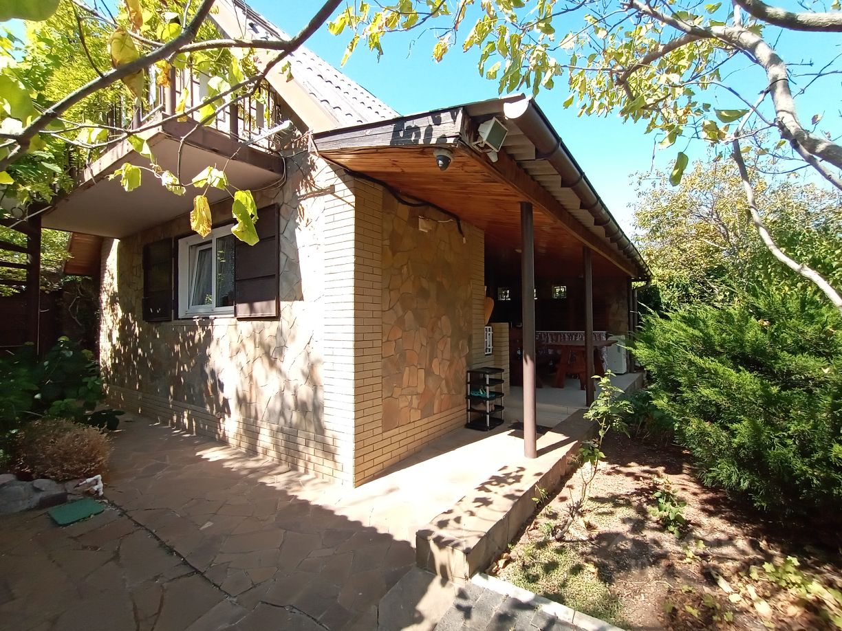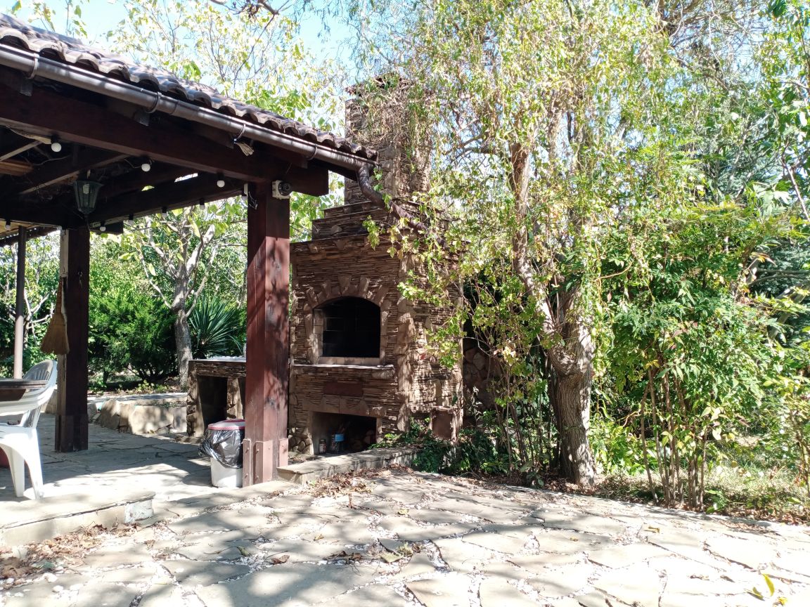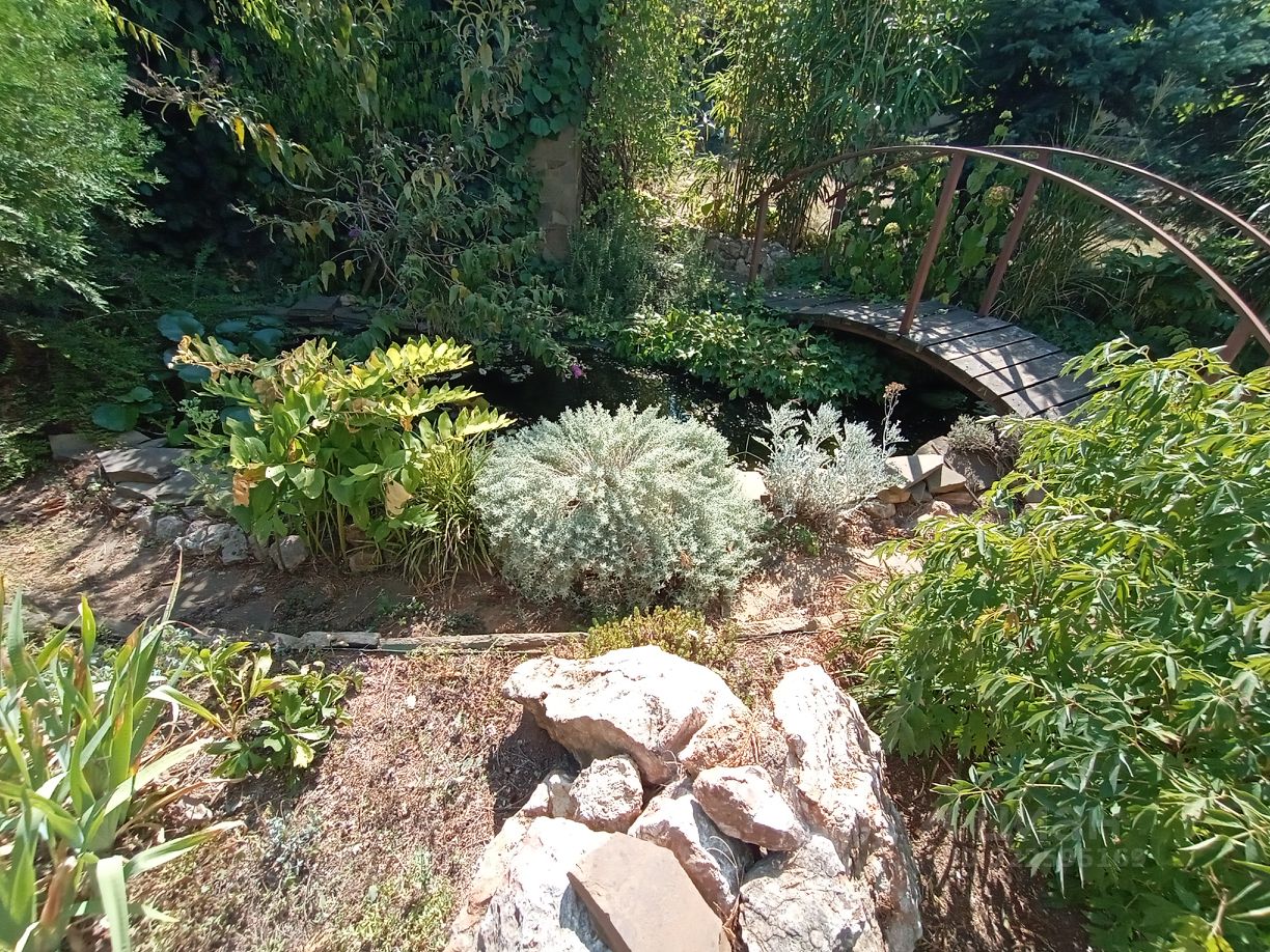 Продается дом-дача с садом. Ландшафтный дизайн. Пруд с рыбками и водными лилиями, уличный очаг, беседка, летняя терраса с кухней у дома, качели, дровяная баня, плодовый сад. Камин в доме.