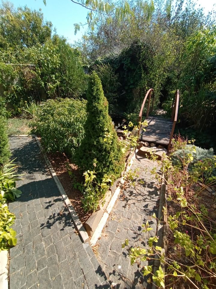 Участок 8,5соток, ровный без уклона, квадратный. Визуально изолирован от улицы и соседей каменной оградой и декоративными растениями. Сад организован для уюта, множество приватных зон, создается полное ощущение уединенности и величины пространства.
