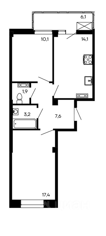 Общая площадь59,5 м2