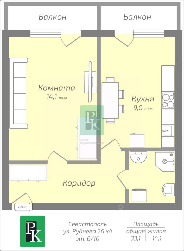1-к. квартира, 42.6 м², 2/11 э. с просторной кухней 10 м2. Расположена г. Севастополь, Гагаринском районе, ул. Руднева, д. 26к4 Квартира теплая и солнечная, с удобной практичной планировкой, подойдет для проживания большой семьи, а также для сдачи в аренду. Позвоните нам, чтобы узнать все детали! Технические характеристики: