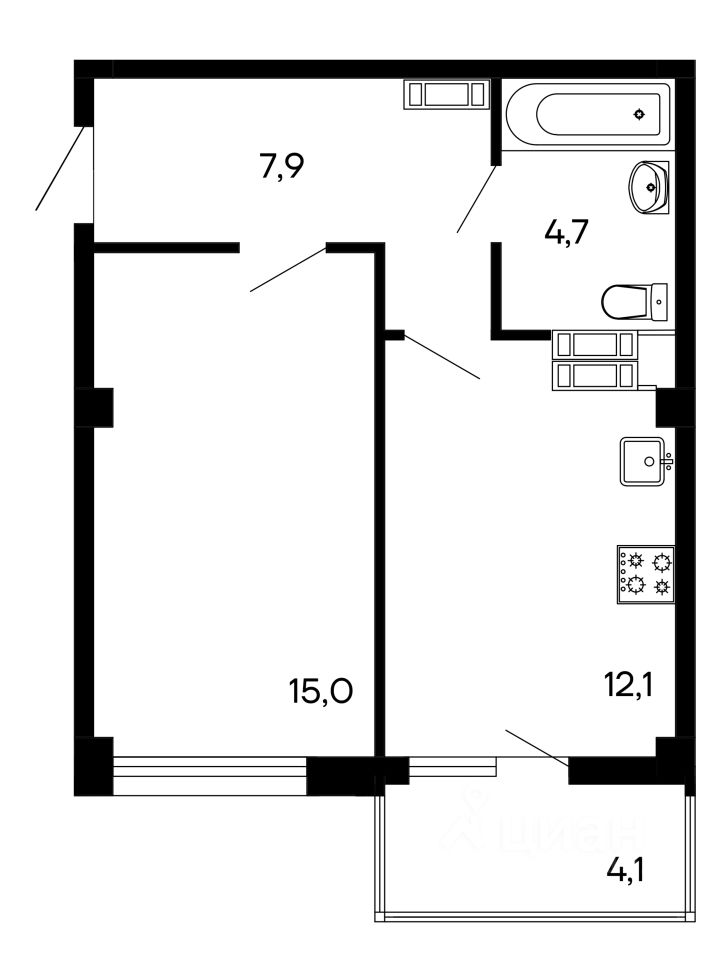 Общая площадь43,8 м2