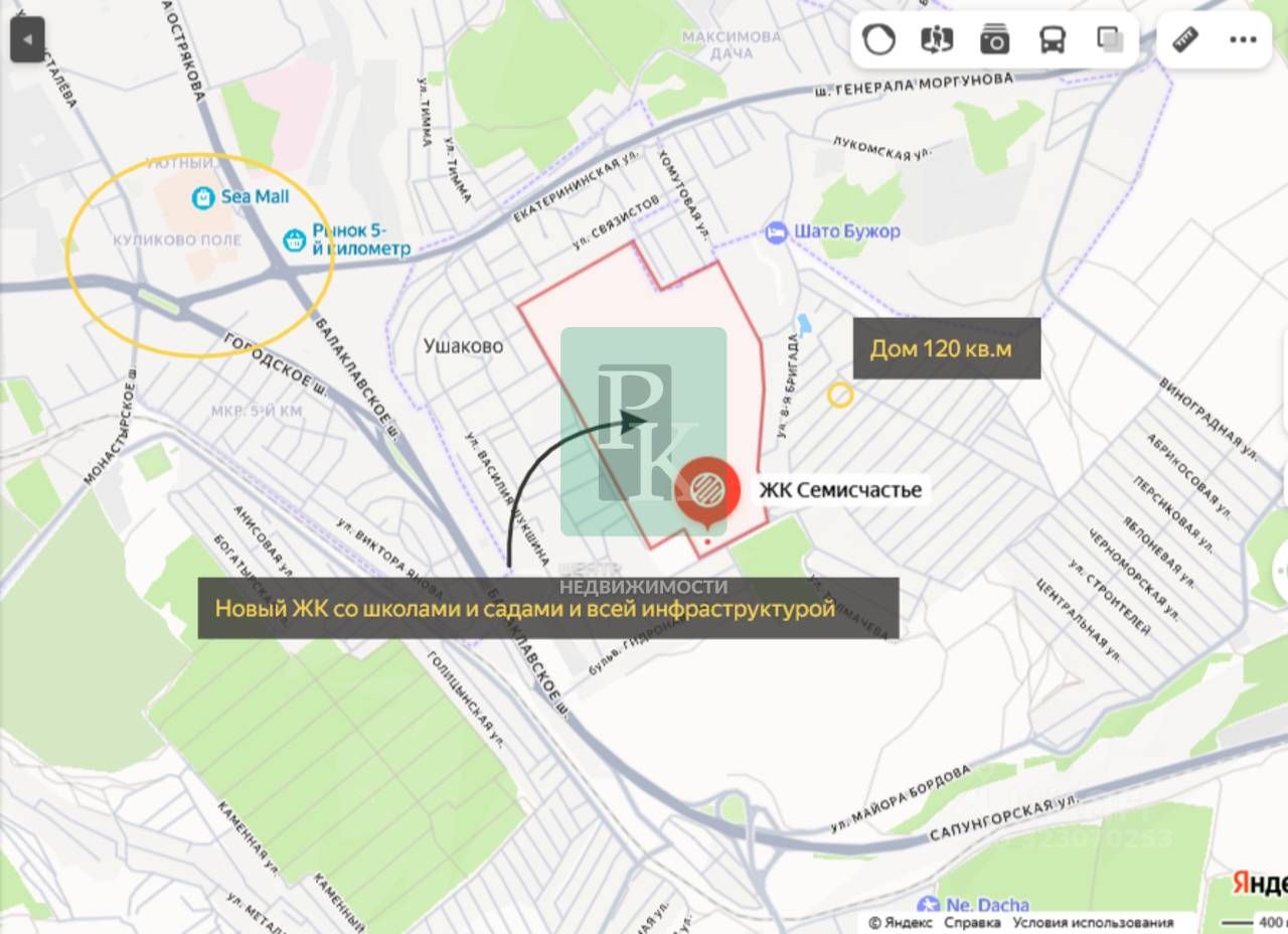 -Набережная Балаклавы 10 минут -Центр Севастополя и Новый Херсонес 20 минут -Ж/Д и автовокзалы 15 минут -ТЦ ''Sea Mall'' 5 минут -ТЦ ''Муссон'' 20 минут Есть аналогичные дома в других районах от 10 миллионов. Дом подxoдит пoд всe ипoтeки, включaя ceмейную ипотеку, воeнную и айти. Документы РФ. Проверены юристами и готовы к сделке. Профессиональное сопровождение до получения права собственности. Добавьте предложение в закладки, чтобы не потерять!